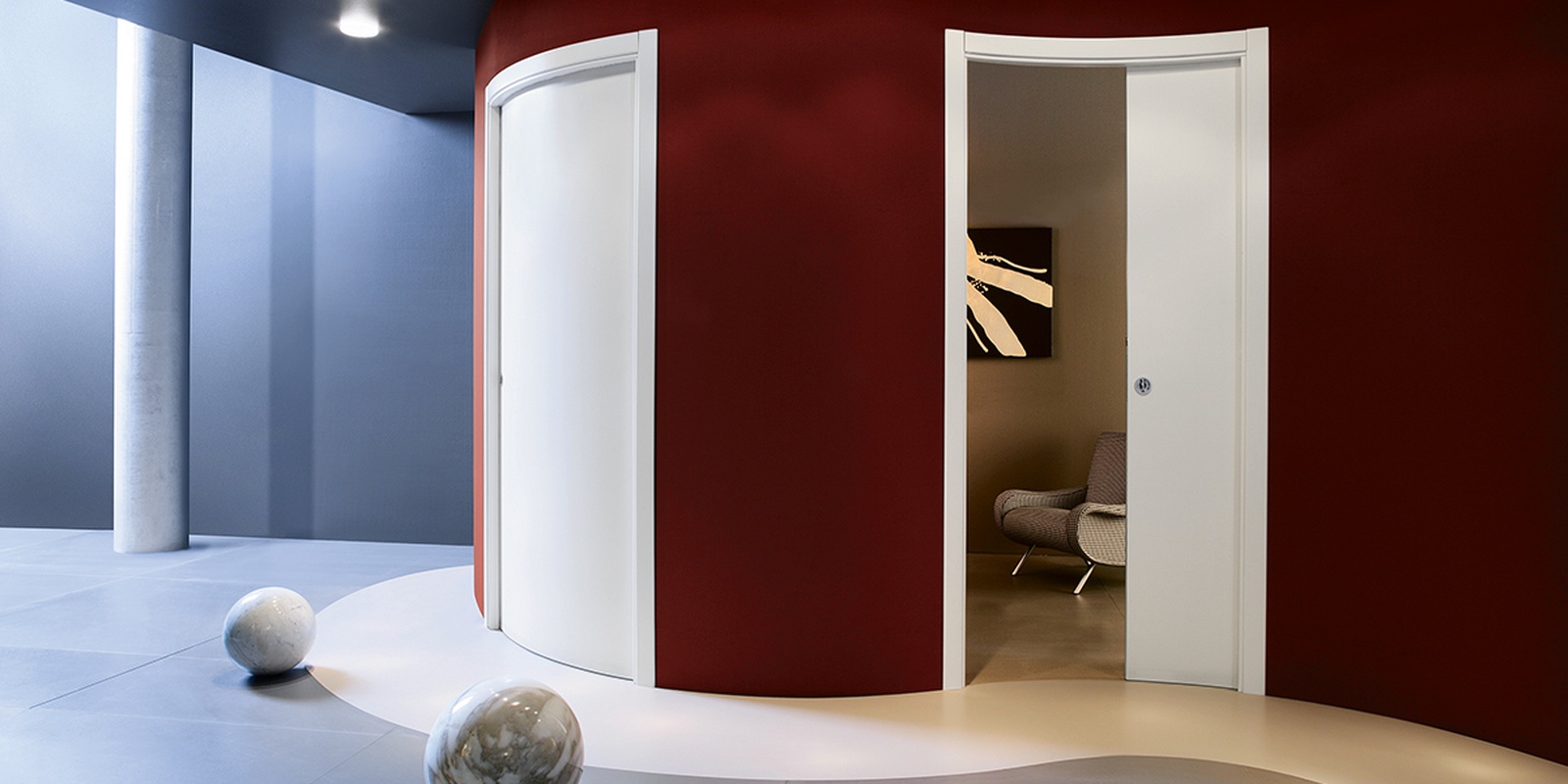ECLISSE Circular Unico разработан для следующей цели: он скрывает дверь, даже если стена не линейная, переосмысливая традиционное разделение пространства.