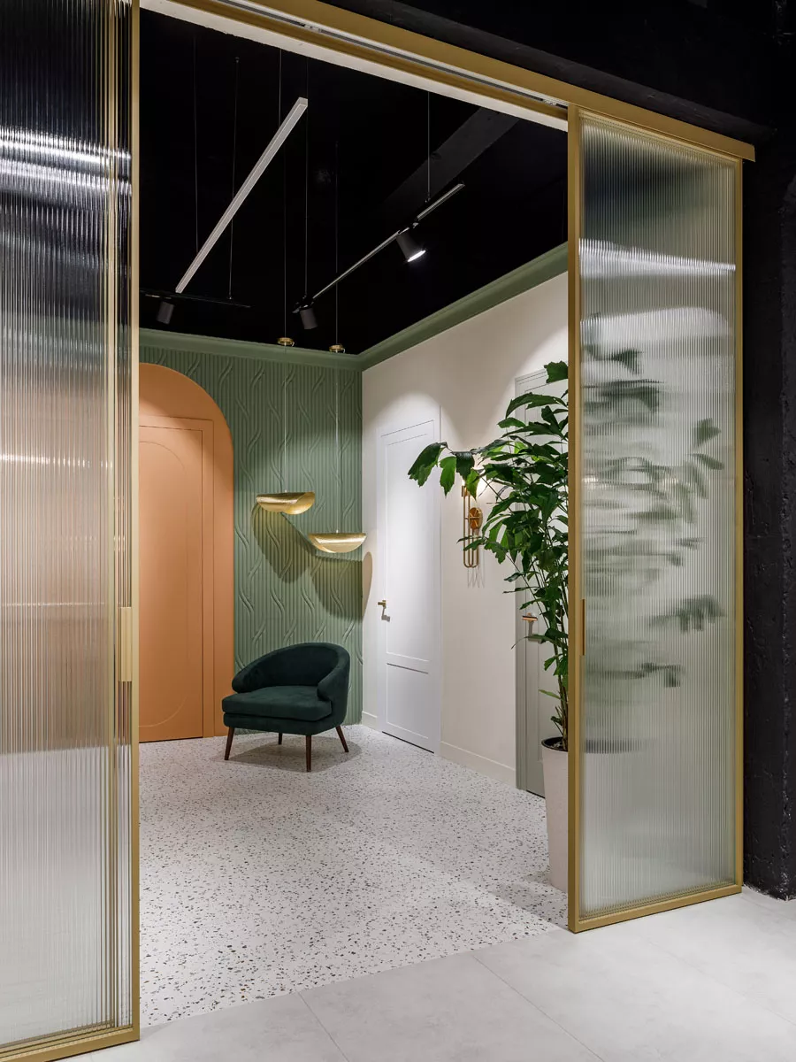 - Рифленое стекло (флутс или риббед гласс) станет стильным акцентом. Искажает изображение без ухудшения светопропускной способности.
