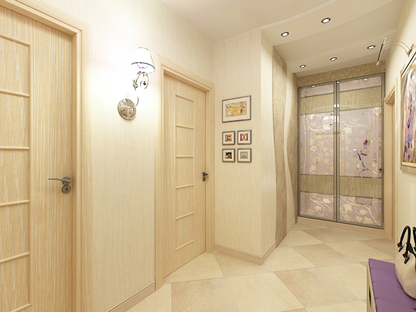 • визуально расширить площадь. Функциональное современное решение - приобрести светлые двери в прихожую раздвижного типа. Все проёмы закрывать ими не нужно, однако для санузла, кладовки или гардеробной компактные модели на роликах подойдут идеально;